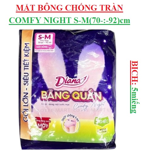 1. Băng quần mặt bông đêm chống tràn Diana comfy night 5 chiếc size S-M5 hông (70-:-92)cm