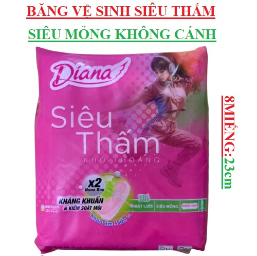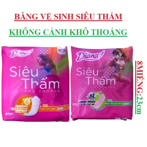 Băng Vệ Sinh Diana Siêu Thấm là dòng băng vệ sinh ban ngày thuộc thương hiệu Diana, có kiểu dáng thời trang độc đáo vừa vặn ôm sát cơ thể ngay cả khi vận động, cùng độ dày phù hợp và khả năng thấm hút vượt trội cho bạn gái luôn tự tin ngay cả trong ngày nhiều. Đặc biệt, sản phẩm ứng dụng công nghệ NANO Bạc giúp kháng khuẩn, ngăn ngừa viêm nhiễm và mùi hôi hiệu quả.