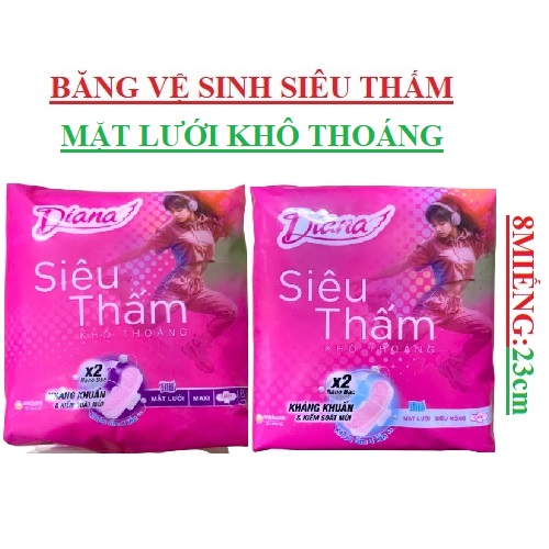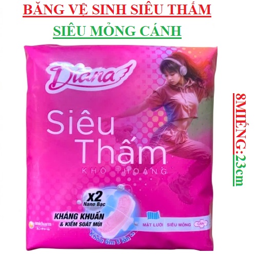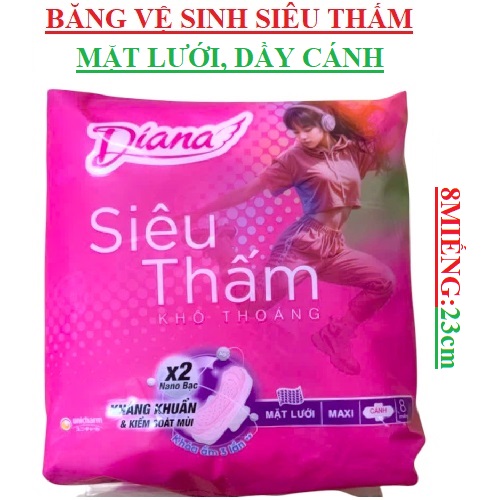 Băng vệ sinh diana siêu thấm mặt lưới khô thoáng cócánh 8 miếng 23cm