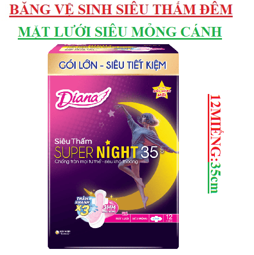Băng vệ sinh Diana super night siêu thấm cánh 3 miếng 35 cm