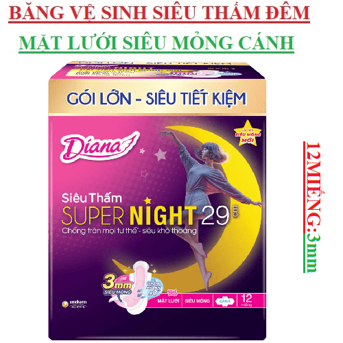 Băng vệ sinh Diana super night siêu thấm cánh 12 miếng 29 cm