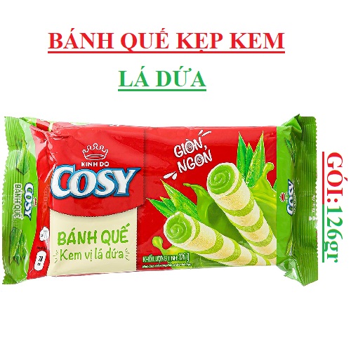 Bánh thơm ngon, giòn tan đậm vị Socola; dâu; Lá dứa; Socola sản phẩm chất lượng đến từ thương hiệu bánh quế Cosy, hương vị thơm ngon, kích thích vị giác khi ăn. Bánh quế có thể sử dụng để ăn vặt hoặc trang trí những món ngọt tùy thích như kem, puding,...