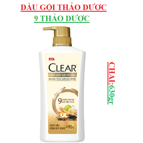 1. Dầu Gội 9 loại thảo dược cổ truyền clear chai 630gr