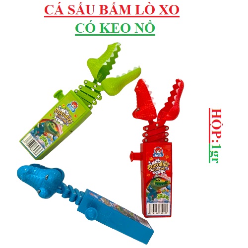 Đồ chơi bấm lò xo cá sấu có chứa kẹo nổ