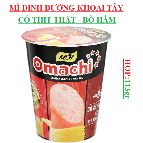 1. Mì ăn liền Omachi có cây thịt thật vị xốt bò hầm cốc 113gr
