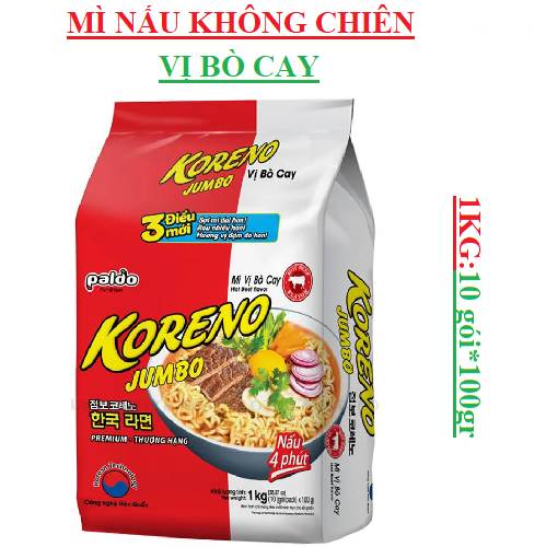 1. Mì nấu không chiên vị bò JumBo Koreno Paldo bịch 1kg (10 gói 100gr)