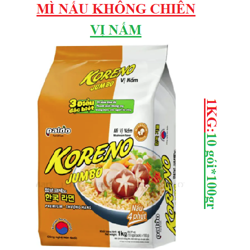 4.Mì nấu không chiên vị nấm JumBo Koreno Paldo bịch 1kg (10 gói 100gr)