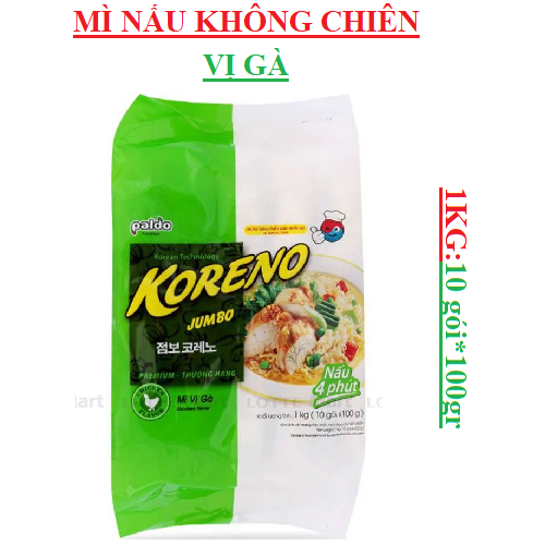 3. Mì nấu không chiên vị gà JumBo Koreno Paldo bịch 1kg (10 gói 100gr)