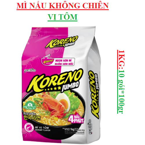 5. Mì nấu không chiên vị Tôm JumBo Koreno Paldo bịch 1kg (10 gói 100gr)