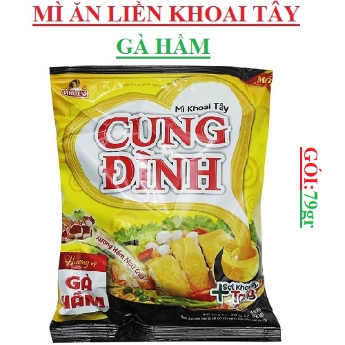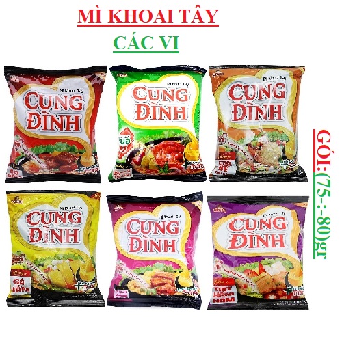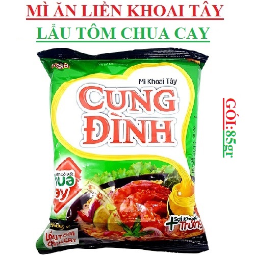 Sợi mì từ khoai tây và trứng vàng dai ngon hòa quyện trong nước súp lẩu tôm chua cay đậm đà cùng hương thơm lừng quyến rũ. Mì khoai tây Cung Đình chính hãng mì Cung Đình tiện lợi, nhanh chóng, là lựa chọn hấp dẫn cho bữa ăn nhanh gọn đơn giản, chất lượng