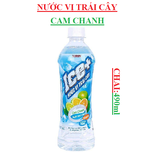 2. Nước tinh khiết vị trái cây vị cam và chanh ICE+ Kirin chai 490ml