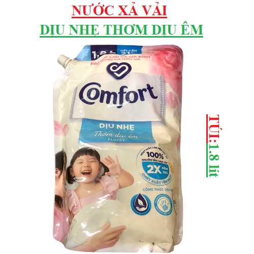 1. Nước xả vải Comfort Dịu nhẹ thơm hương phấn túi 1.8 lít