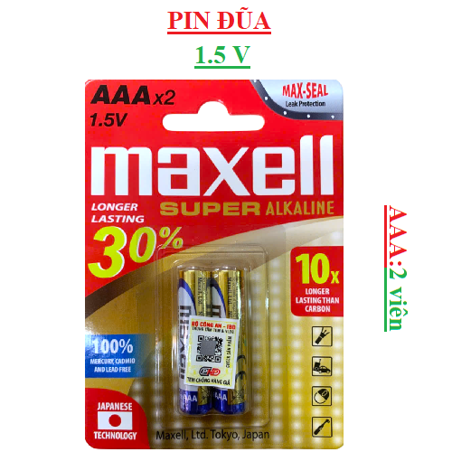 2. Pin đũa 3A kiểm maxell vỉ 2 viên 1.5 V