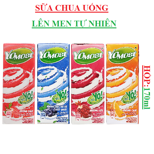 1.Sữa chua uống lên men tự nhiên hương dâu Yomost hộp 170ml