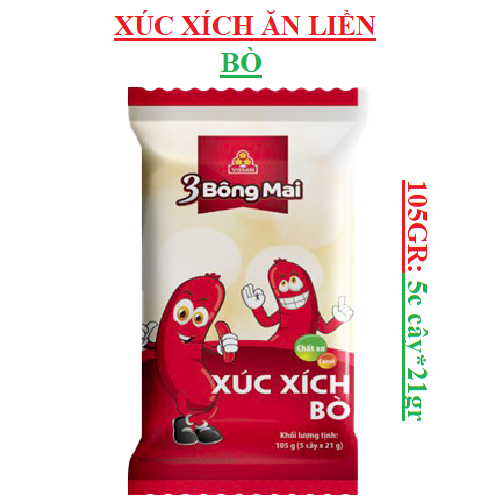 1. Xúc xích ăn liền 3 bông mai bò Vissan gói 105gr(5 cây * 21gr)